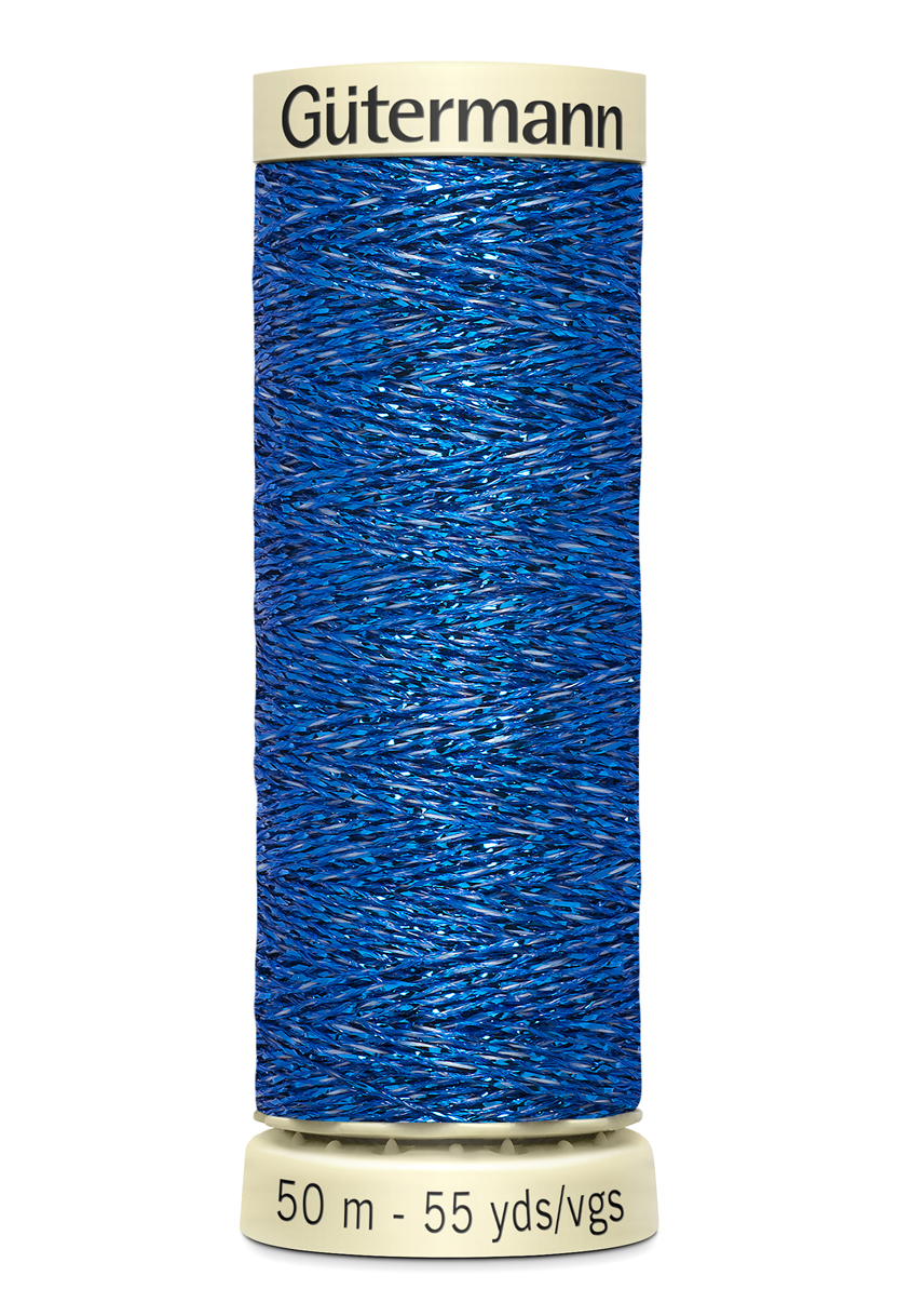 Gutermann metallic thread on 50m bobbins. Great for decorative stitching and machine embroidery. Also for decorative effects in knitwear. For hand and machine sewing. 70% polyamide and 30% polyester. Recommended needle: Universal, size 100 – 110.