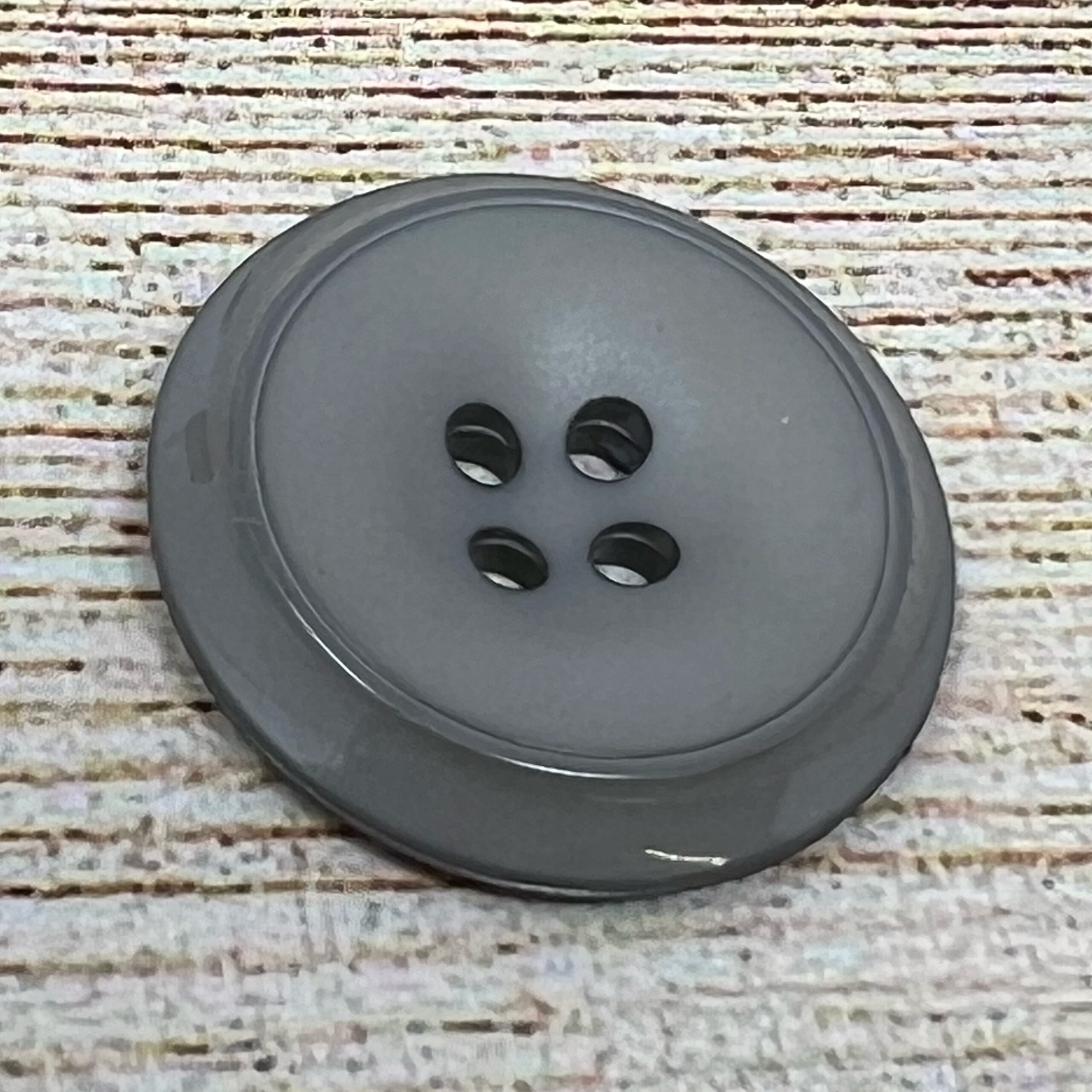 B1204-40-109 mid grey, matte & shiny finish button. Size 40 = 26mm. 25 pcs per pack. Made in Italy.