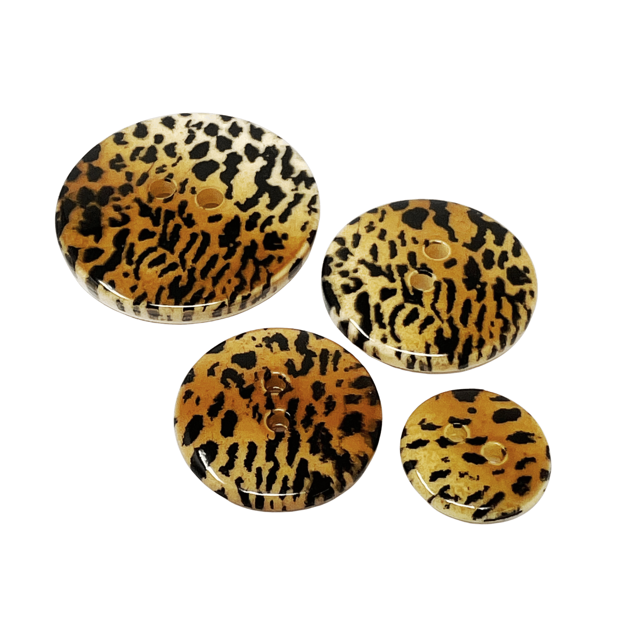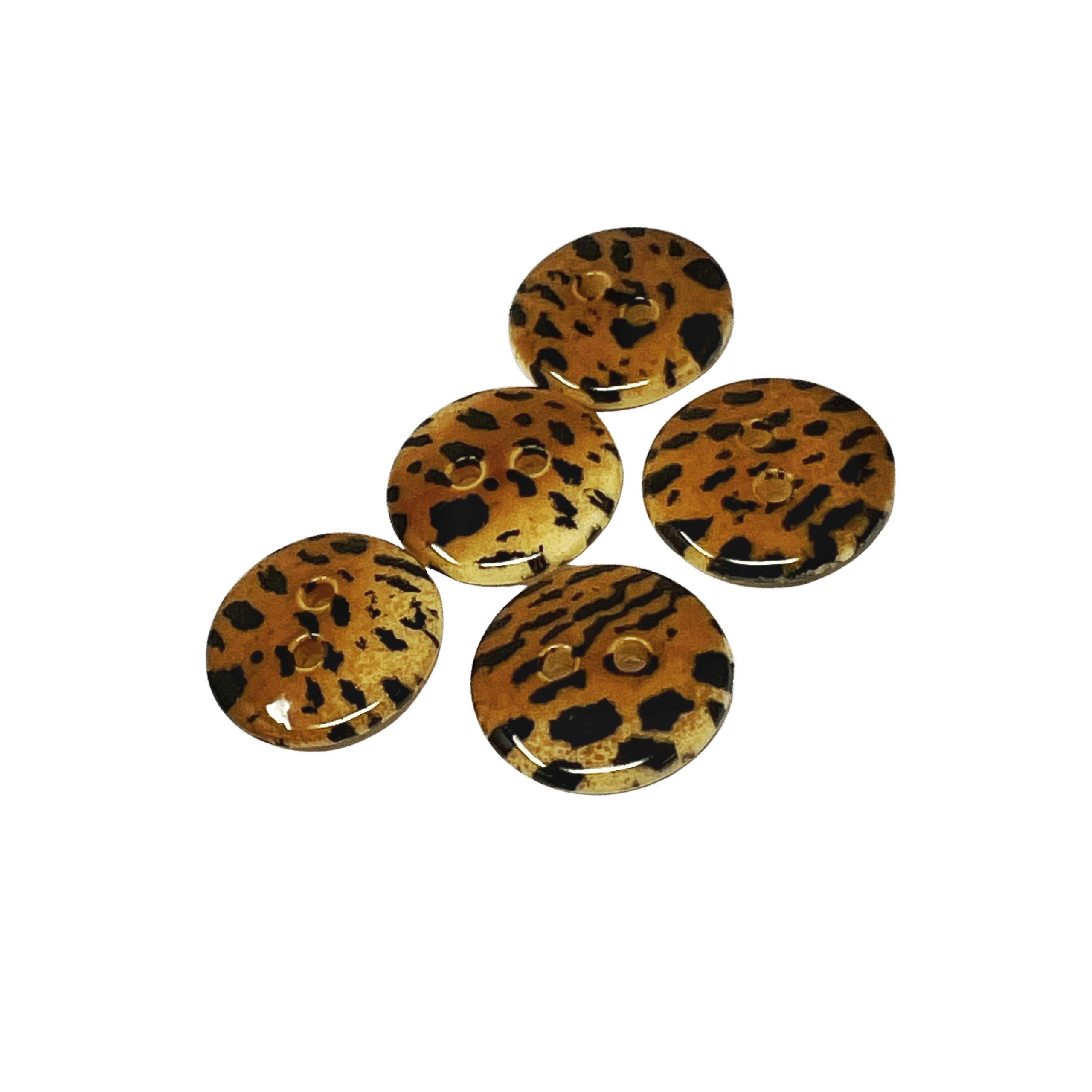 B20LE-24 – 15mm leopard design buttons, 2 hole with shiney finish. 20 per pack