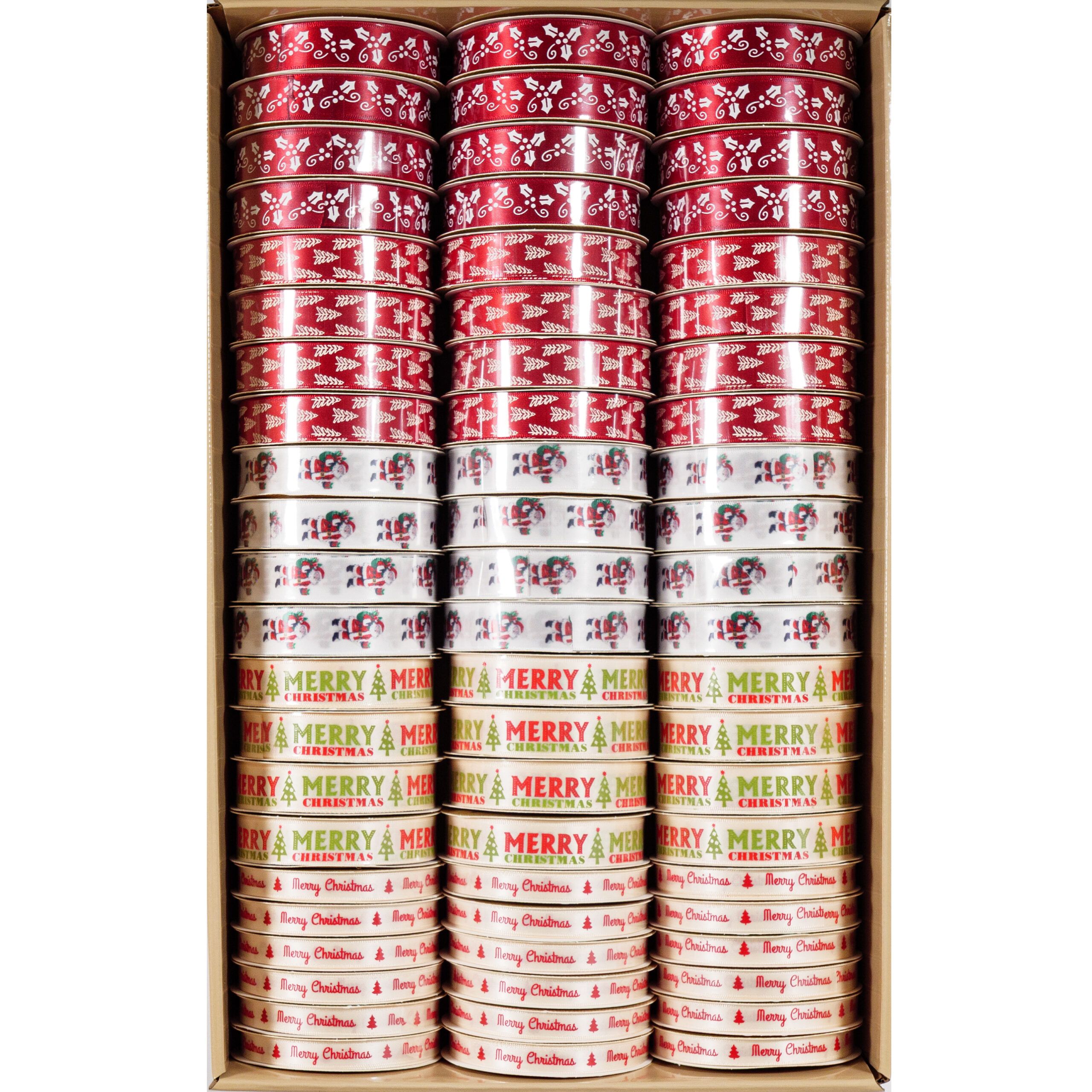 RBXZ100 Christmas themed ribbon boxes come in a box of 66 reels,