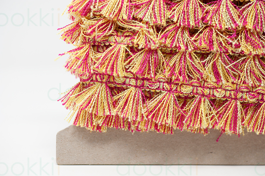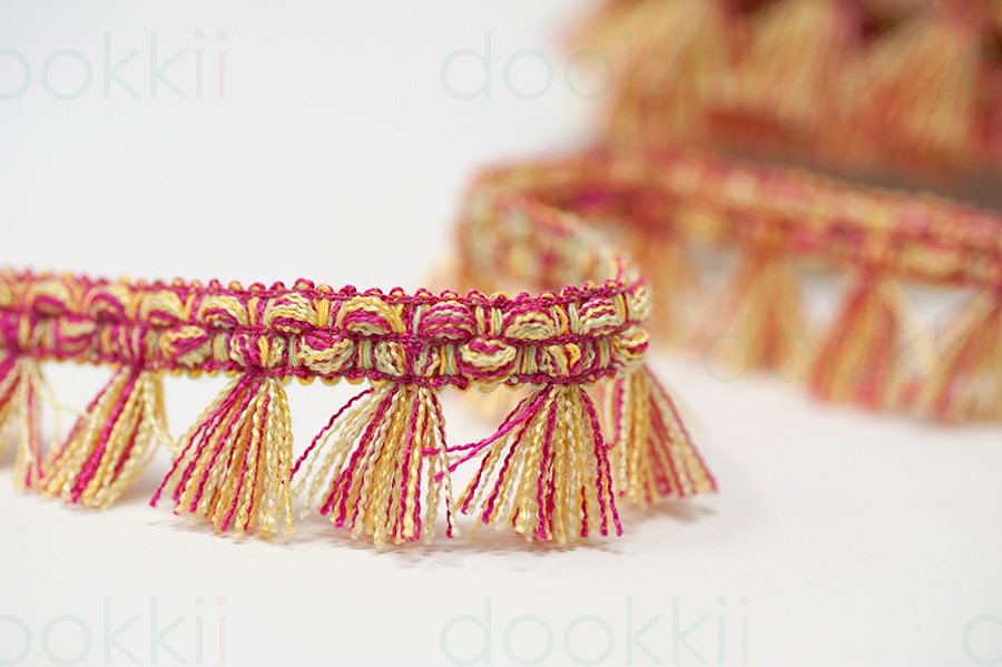 30mm deep filigree tassel fringe. Contemporary & simple, this modern, stylish design brings a dash detail to all types of soft furnishing projects. From cushions & throws to blinds & pelmets, this versatile trim has so many uses. Made from a cotton & viscose mix of yarns which gives a nice contrast of matte & shiny finishes. Stocked in 11 unique colours. Made in England