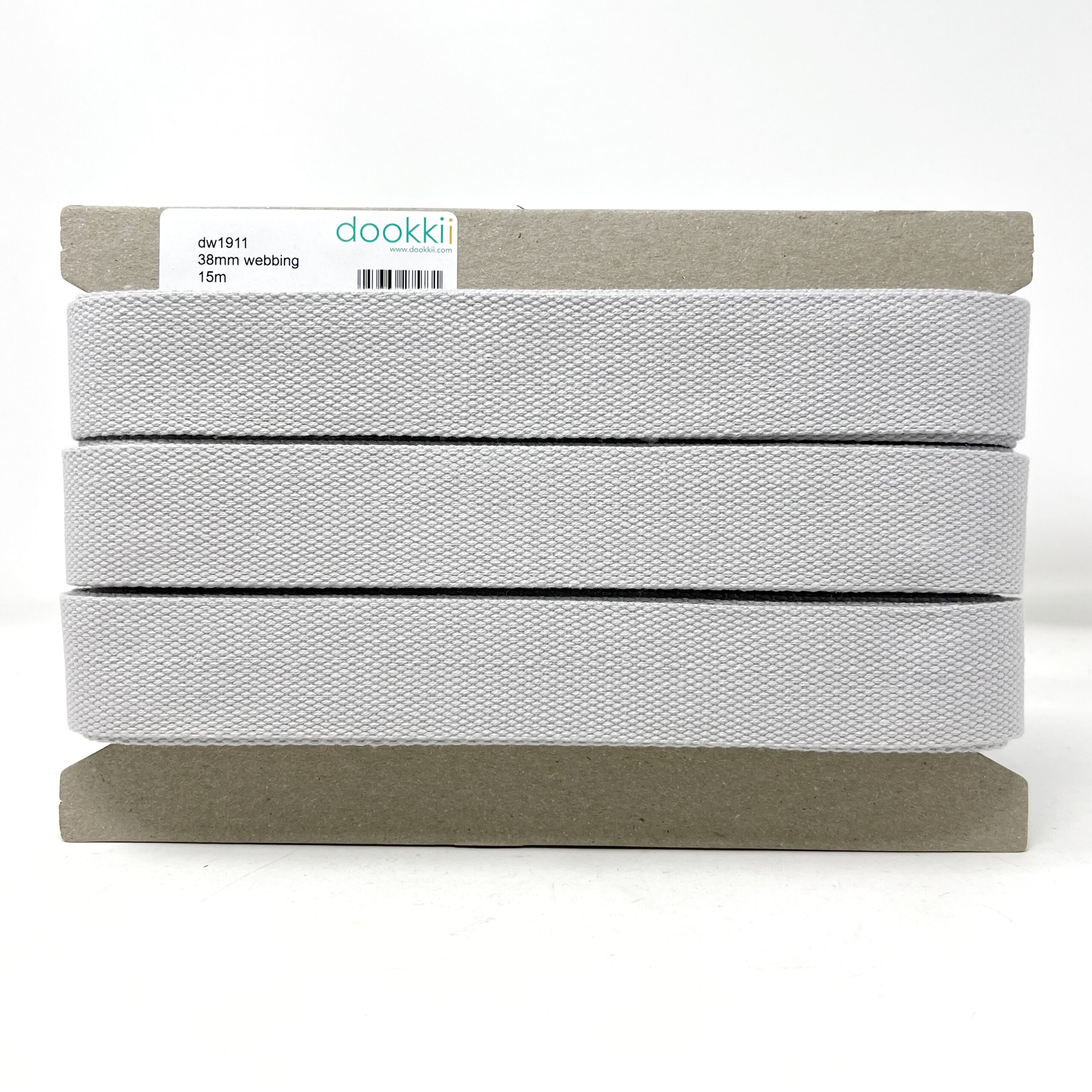 dw1911-38-89, silver grey, 38mm heavy duty webbing, 2mm thickness, 15m per card