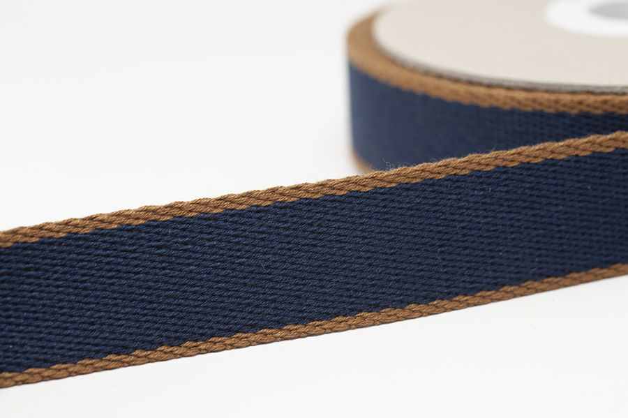 30mm cotton mix heavy duty webbing, 10m – colour 105: navy/chestnut