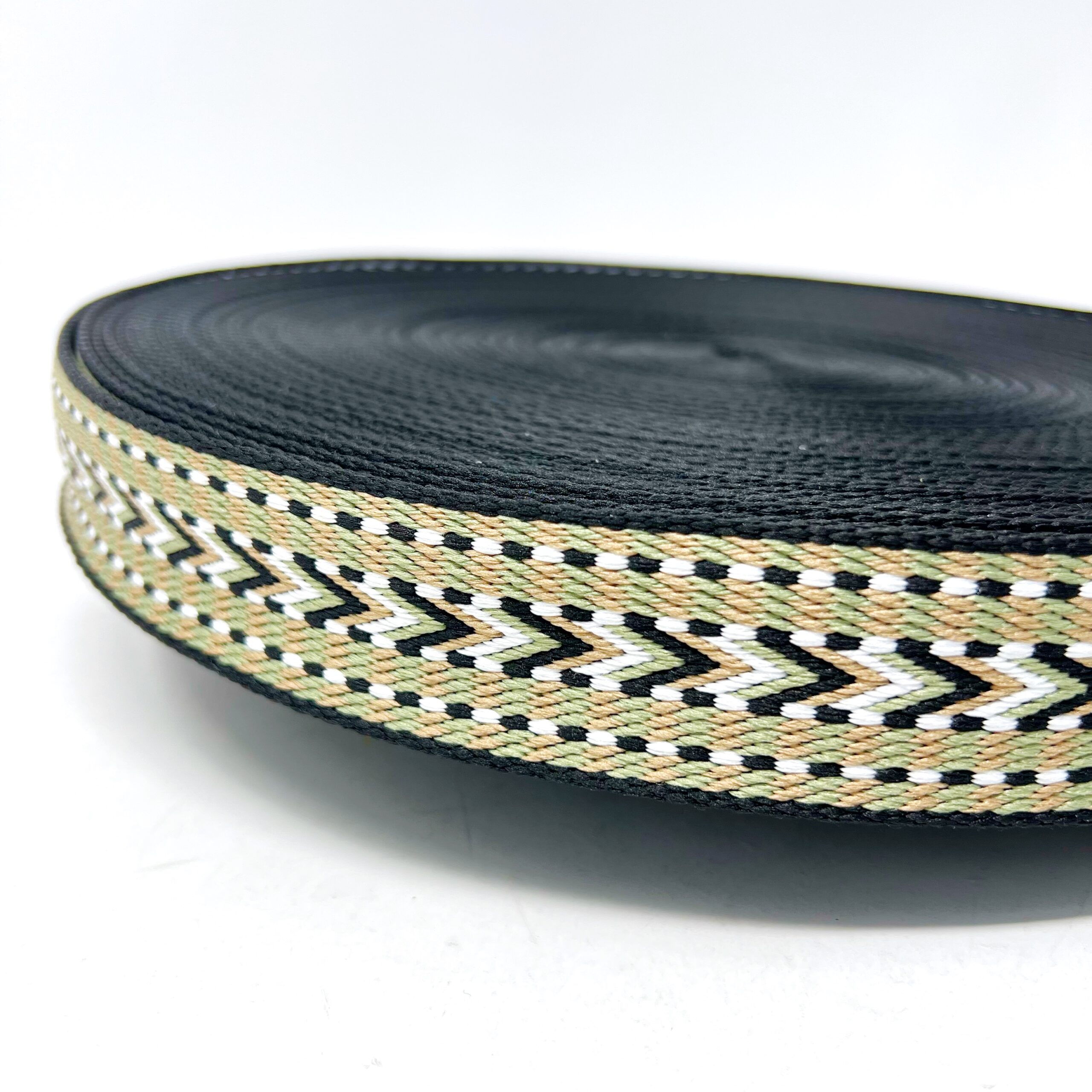 dw3518-336-BR, pistachio/taupe/black, heavy weight 38mm arrow weave webbing, 100% polyester, 45m bulk roll