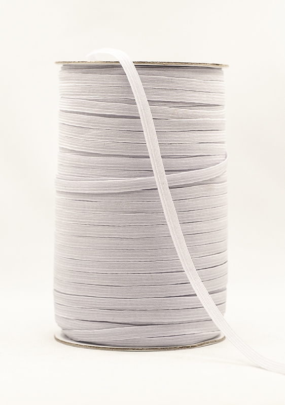 white elastic, 8 cord, widely known as’ braided elastic’ , 7mm wide, rolls x 250m