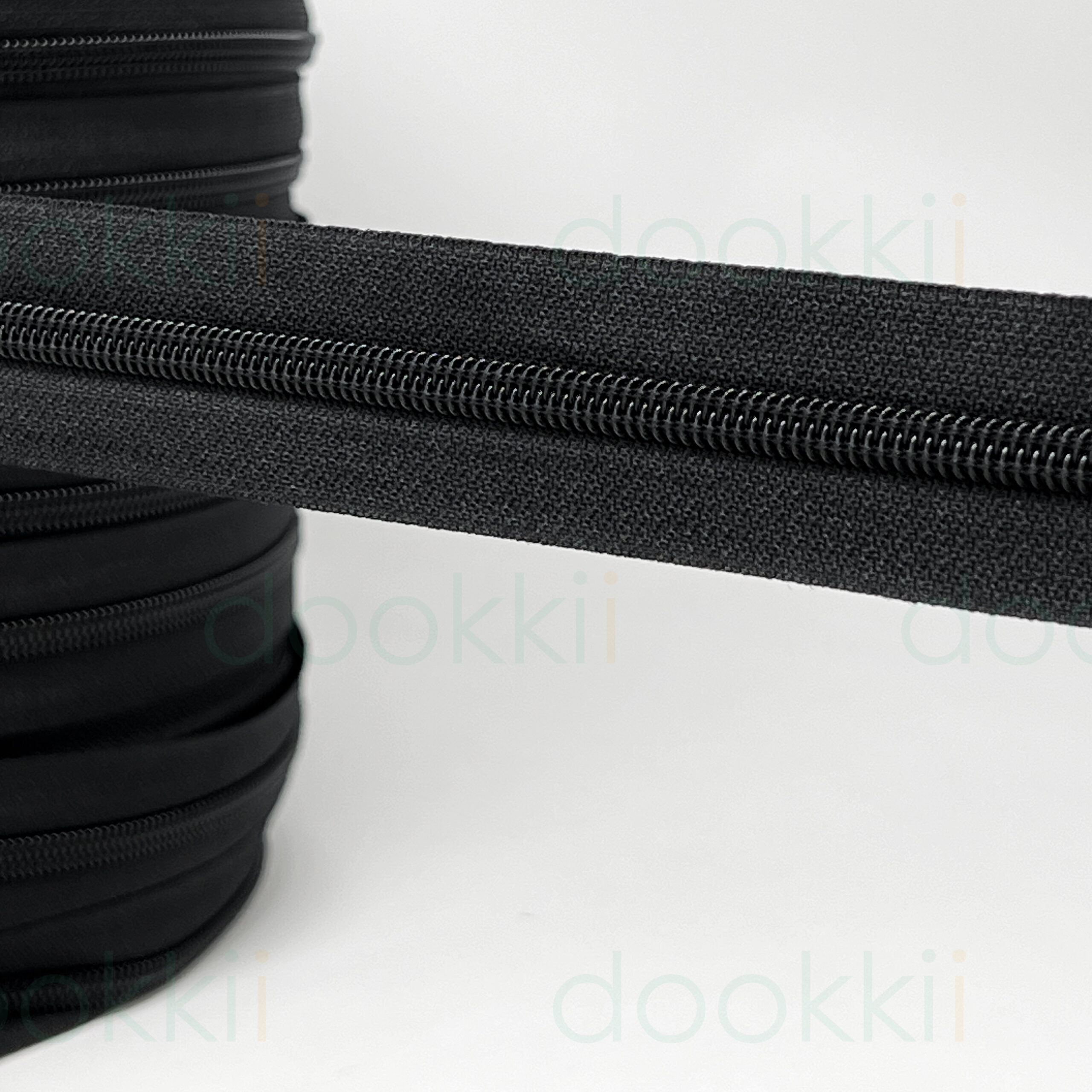 s7-150con-black-black- no.5 (6mm) deluxe continuous zip with nylon teeth, 150 metres per roll. Use with any of our ZS7 metal sliders