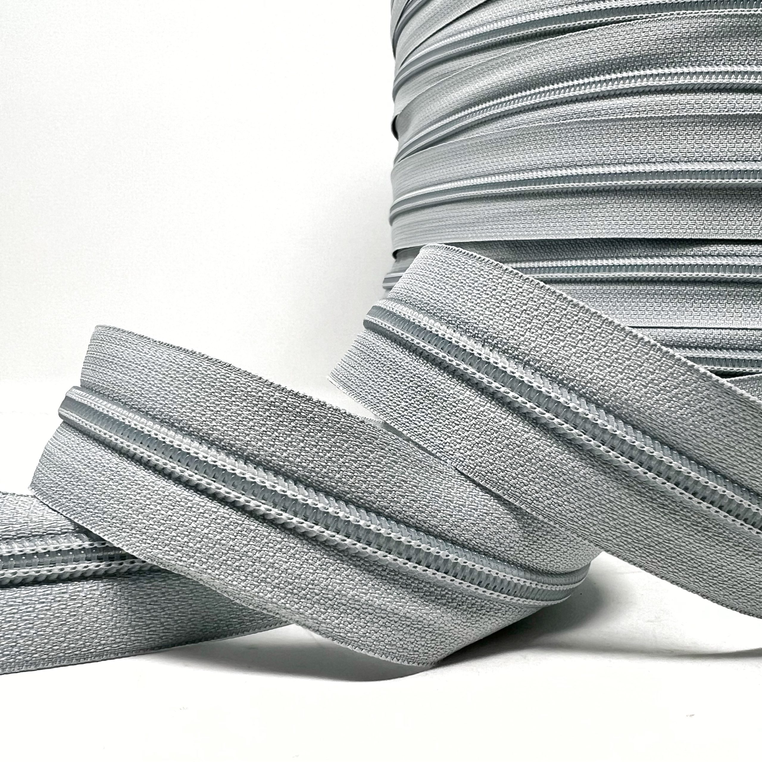 s7-20con-silver – no.5 (6mm) deluxe continuous zip with nylon teeth, 20 metres per card. Use with any of our ZS7 metal sliders